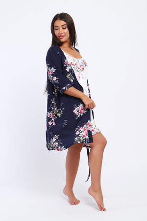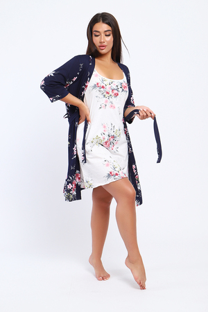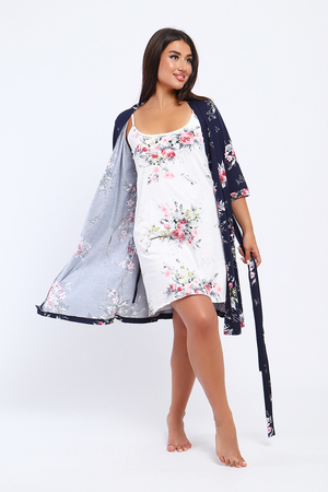 Стильный, элегантный комплект для женщин состоит из пеньюара и сорочки - отличный вариант одежды для дома на каждый день. Прекрасно смотрится на любой фигуре. В нем удобно заниматься домашними делами, отдыхать, готовить, а в сорочке - спать. Изделие выполнено из легкой ткани - 100% хлопка (кулирка). Женский пеньюар на тонких, невесомых бретелях имеет приталенный силуэт. Халат на запах удобно подвязывается поясом и скрытыми завязками, оснащен двумя карманами.