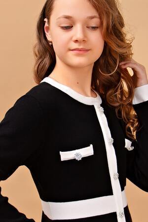 Прекрасное теплое платье для девочки. Мягкий, вязаный трикотаж не сковывает движений, обладает хорошей воздухопроницаемостью и приятно облегает тело. Модель декорирована пуговицами со стразами и дополнена съёмной брошью. Отложной воротник съёмный на пуговицах. Идеальный выбор для красивого образа на каждый день. Брошь - в ассортименте.