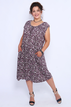 Платье женское с коротким рукавом. Данная модель выполнена из трикотажного полотна кулирка (хлопок 100%). Покрой полуприлегающий, рукав реглан. Верхняя часть изделия с кулиской, что позволяет регулировать горловину. По бокам присутствуют карманы, которые обработаны окантовкой из основной ткани. Отлично подходит для прогулок и дома.