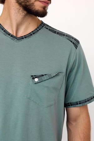 Домашний мужской костюм состоит из футболки с нагрудным карманом и и брюк с привлекательной расцветкой в виде клетки. Брюки и футболка на 100% состоят из хлопка, что позволяет им оставаться дышащими и легкими. Вы будете чувствовать себя уверенно, если внезапно придут гости или в дверь постучатся соседи. Этот костюм будет незаменим в вашем гардеробе. Легкий и удобный, он не сковывает телодвижения.