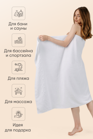 Отельное махровое полотенце высокого качества - выбор мужчин и женщин. Модель производства "Донецкая Мануфактура" выполнена из натурального материала. Состав ткани - хлопок 100%. Плотность - 350 г/м2. Изделие отлично впитывает влагу. Полотенце представлено в классическом белом цвете. Многофункциональный аксессуар подходит для повседневного использования дома и в бане. Его можно взять с собой на пикник или для отдыха на пляже, также вещь пригодится во время проведения массажа. Полезная принадлежность для соблюдения личной гигиены дополнит интерьер любой ванной комнаты. Хлопковое полотенце премиум - качества средней плотности выдерживает многократные стирки. Быстросохнущий аксессуар из мягкого текстиля создан для активного домашнего применения, также его можно брать с собой в поездки на море или для похода в сауну. Это нужная вещь после выхода из душевой или плавания в бассейне. Пушистое полотенце нежно окутает ваше тело и подарит комфорт после спортивных тренировок и принятия душа. Удобный аксессуар пригодится на пляжном отдыхе, большим полотенцем можно накрыть лежак или использовать как летнее покрывало. Понадобится для отдыха летом на даче и при приеме гостей. Полотенцем 100х150 см можно укрывать детей вместо пледа или использовать как махровую простыню. Натуральный гипоаллергенный материал позволяет использовать его людям с чувствительной кожей. Универсальное махровое полотенце - отличный подарок для лучшего друга или коллеги на день рождения. Классную вещь с интересным дизайном можно подарить взрослой дочке или сыну - подростку, отцу или брату, сестре и подруге на любой праздник. Это оригинальный сюрприз на новоселье членам семьи и близким друзьям. Подарите полезную вещь свекрови и теще или дедушке и бабушке без повода. Белое махровое полотенце - хороший подарочный вариант мужу или жене на годовщину отношений или родителям на юбилей. Такой подарок понравится любимой девушке или парню. Роскошное хлопковое полотенце - универсальный женский или мужской подарок на любой случай. Товар доставляется в надежной упаковке - в зип-пакете.