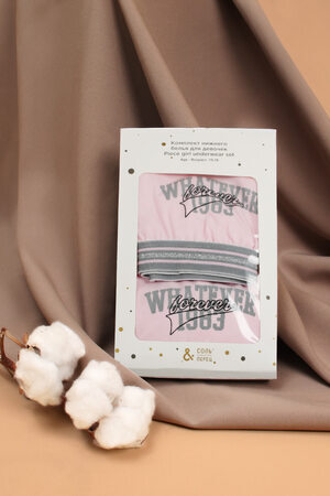 Комплект нижнего белья (топ и трусы) для девочек. Натуральный материал, не вызывает аллергии и раздражения кожи. Обладает высокими гигроскопичными и воздухопроницаемыми свойствами. В таком комплекте ребенок будет чувствовать себя легко и комфортно на протяжении всего дня.