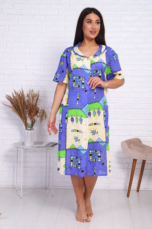 Халат домашний летний бязевый на пуговицах с завязками, плотностью 100 гр/м. Халат со втачным коротким рукавом и с защипами над грудью, что обеспечит отличную посадку и на большой груди, что придает ему воздушность, а даме в этом халате - больше женственности. Завязки можно завязать как спереди, так и сзади, что подчеркнет или наорборот - скроет талию. Украшен кантом по краям воротника и удобными накладными карманами прямоугольной формы, из которых ничего не выпадет. 100% хлопок не вызывается аллергии, а кожа в халате из бязи дышит и впитывает влагу. Халат - отличный подарок перед летом, особенно, перед дачным сезоном любой женщине и девушке! Бязь не так легко пачкается, и халат из бязи можно использовать как рабочий, прекрасно подойдет для работы в огороде, в качестве накидки на футболку и бриджи. Так же отлично подойдет для поездки на пляж поверх купальника, так как бязь очень быстро сохнет. Отлично подойдет для дома, дачи, после бани и сауны, одеть с утра или после ванны, не сковывает движений, отлично сидит по фигуре и подчеркивает талию. Хороший подарок для мамы, бабушки, сестры и подруги. Благодаря большому размерному ряду подходит для беременных и кормящих мам. Так же прекрасно подойдет в роддом, благодаря своим гиппоаллергенным свойствам и удобному использованию.