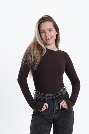 Представляем Вам обтягивающий лонгслив с длинными рукавами от хозяева brand. Базовый лонгслив - стильный элемент женского гардероба. Хлопковый лонгслив - универсальная модель кофты с рукавами, имеющими специальную прорезь для большого пальца - новый тренд!