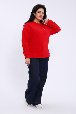 Свитшот женский из футера 3-х нитки барашек качества пенье. Модель свободного кроя в стиле оверсайз, спущенная пройма, горловина и манжеты обработаны эластичным кашкорсе, на груди слева вышивка. Низ джемпера на широком манжете из основного полотна. Толстовка стильная, приятная к телу, выполнена из двухслойного, плотного трикотажа - внутри интерлок -хлопок, с наружи начёс в виде пушистого "барашка" из полиэстера. Барашек не скатывается, не пиллингуется. Универсальный, тёплый свитшот - необходимая вещь в прохладную погоду, отлично подойдёт для прогулок, активного отдыха, занятием спортом.