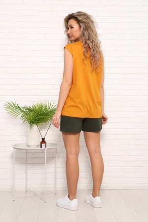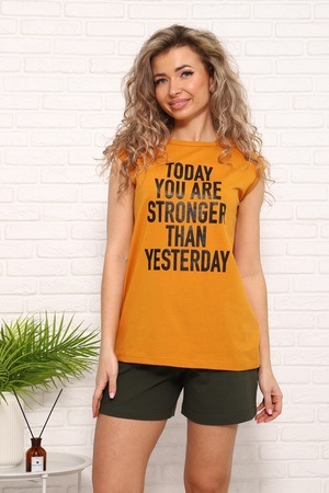 Костюм женский: футболка без рукавов, с принтом на полочке; шорты с боковыми карманами, на эластичном поясе. Комфорт 100% хлопка.