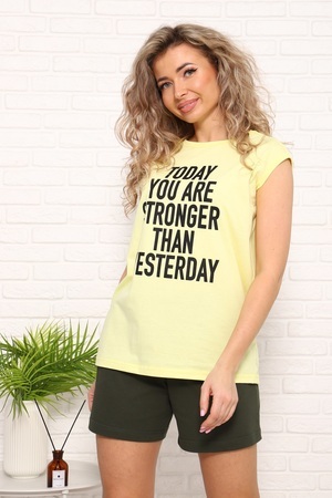 Костюм женский: футболка без рукавов, с принтом на полочке; шорты с боковыми карманами, на эластичном поясе. Комфорт 100% хлопка.