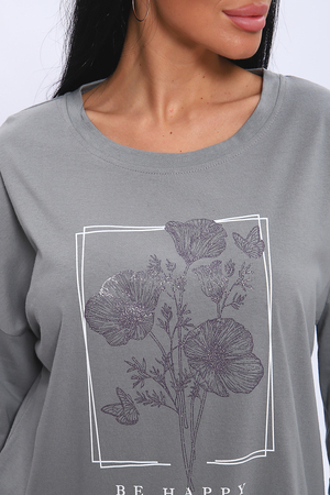 Туника свободного кроя из мягкого, натурального хлопка подарит ощущение комфорта и уюта. Принт маки с использованием глиттера и техники объёмной печати украшает модель, придавая ей изысканный вид. Обработка деталей вкруговую с закрепкой, рукав длиной 3/4, горловина втачная из основной ткани. Большие размеры!