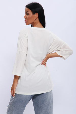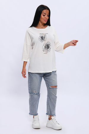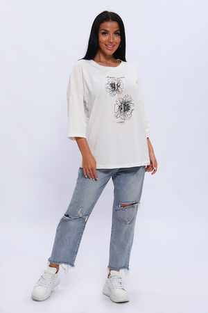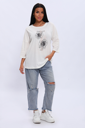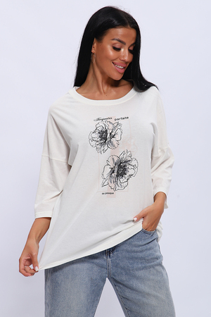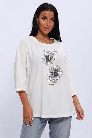 Туника свободного кроя из мягкого, натурального хлопка подарит ощущение комфорта и уюта. Принт пионы с использованием глиттера и техники объёмной печати украшает модель, придавая ей изысканный вид. Обработка деталей вкруговую с закрепкой, рукав длиной 3/4, горловина втачная из основной ткани. Большие размеры!