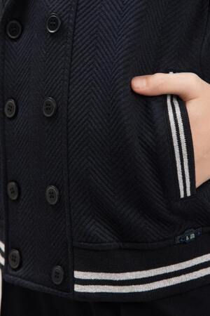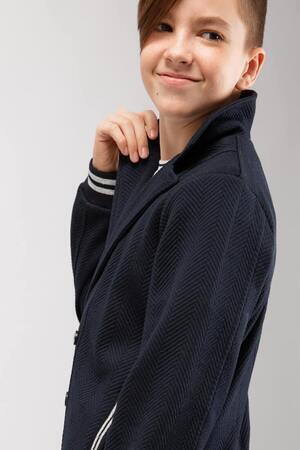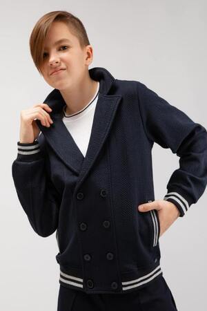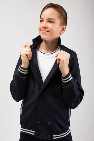 Пиджак-бомбер для мальчика Соль&Перец. Рукава и низ изделия с широкими, эластичными манжетами. Модель идеально сочетается с брюками любого фасона и подойдет как для школы, так и для торжественного мероприятия.
