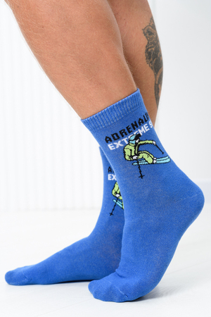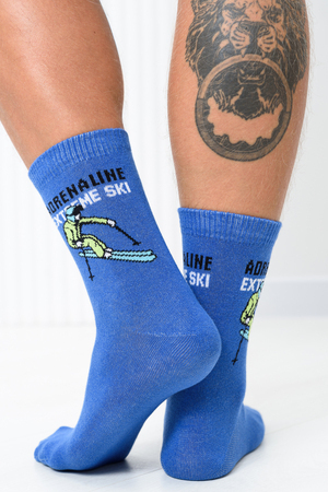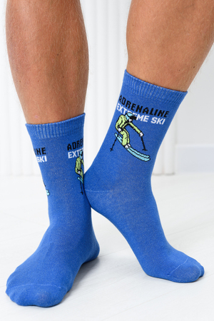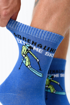 Комплект мужских носков 1 пара. На верхней части носка изображение горнолыжника.