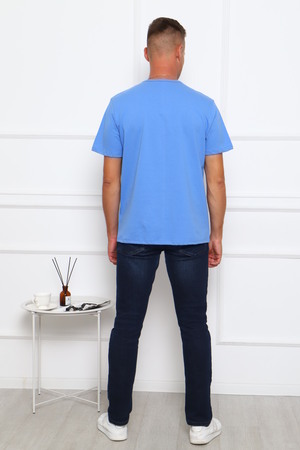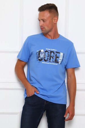 Футболка мужская, выполнена из трикотажного полотна кулирка. Футболка свободного кроя, горловина окантована, на полочке выполнена печать.