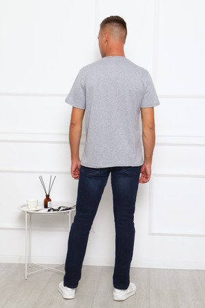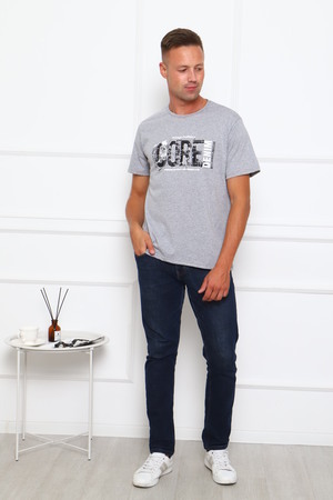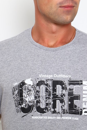 Футболка мужская, выполнена из трикотажного полотна кулирка. Футболка свободного кроя, горловина окантована, на полочке выполнена печать.