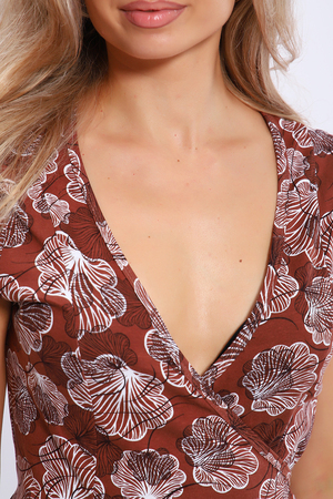 Халат запашной на завязках и с короткими рукавами-крылышками. В боковых швах удобные карманы.