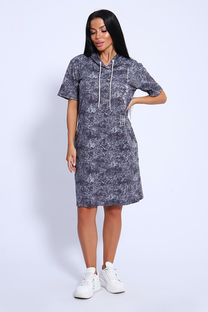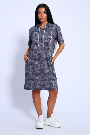 Женская туника из легкого трикотажного материала тонкого хлопка - кулирки. Свободная, спортивная, с капюшоном, объем которого регулируется атласной лентой контрастного цвета. Тунику вполне можно использовать как летний вечерний костюм, как повседневный домашний наряд или как легкое праздничное или офисное платье. Благодаря свободному крою, туника отлично подойдет полным и пышным женщинам, беременным девушкам и кормящим мамам. Рисунок ткани имитирует "вареную" джинсовку, актуален всегда и придает изделию особый шик. Карманы спрятаны в боковых швах для вашего удобства.