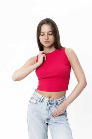 Классическая майка в рубчик - идеальный вариант для лета! Она имеет укороченный крой. Трикотажный топик для девушек прекрасно тянется, не просвечивает. Натуральный состав дает коже дышать в жаркие летние дни.