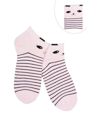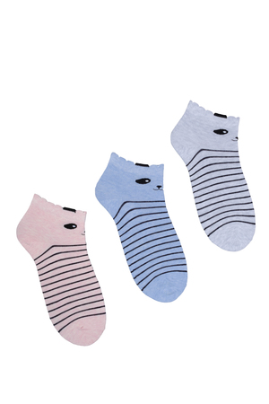 Носки Куки женские. Набор укороченных женских носков. В комплекте 6 пар. Розовая, голубая и серая вариантов расцветки, полоски, рисунок кошачьей мордочки. В продаже имеются аналогичные подростковые носки Куки