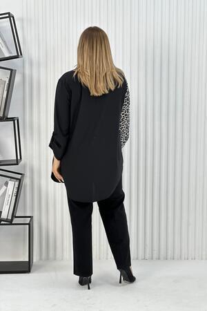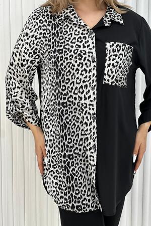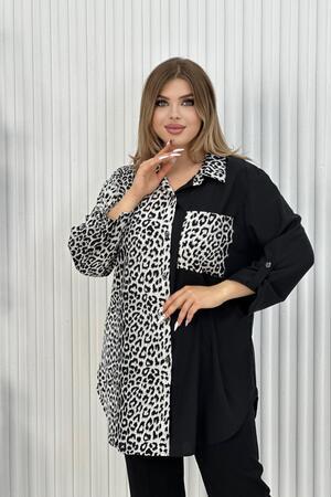 Элегантная женская туника с трендовым узором "леопард". Блузка выполнена из легкой, но плотной ткани, воротник рубашечного типа, на передней полочке карман, на пуговицах, рукава с манжетом, также на пуговицах. Данная модель идеально подойдет для любых мероприятий, выхода на работу и просто на прогулку.