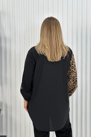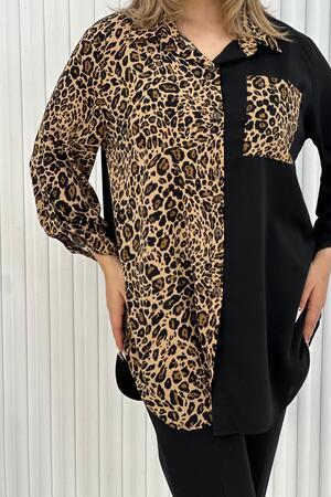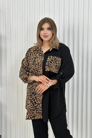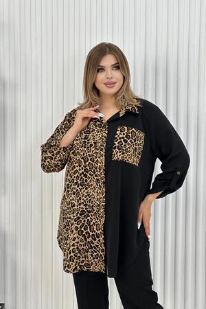 Элегантная женская туника с трендовым узором "леопард". Блузка выполнена из легкой, но плотной ткани, воротник рубашечного типа, на передней полочке карман, на пуговицах, рукава с манжетом, также на пуговицах. Данная модель идеально подойдет для любых мероприятий, выхода на работу и просто на прогулку.