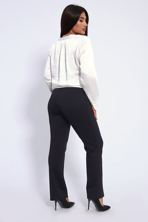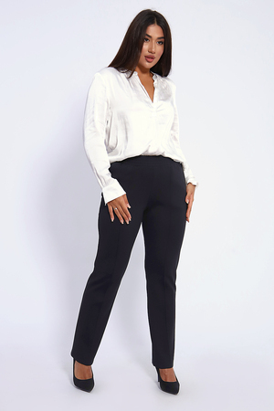 Удобные классические брюки на осень и зиму из мягкой приятной ткани - джерси. Ткань плотная, достаточно теплая, хорошо тянется, не электризуется, благодаря наличию в составе вискозы. Брюки прямого кроя, полноценная длина, отстроченные стрелки стройнят фигуру. Пояс на резинке заготовлен на спецмашине, средняя посадка, по бокам внутренние карманы. Отличный вариант для всех случаев жизни: работа, прогулка, праздник.