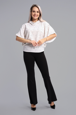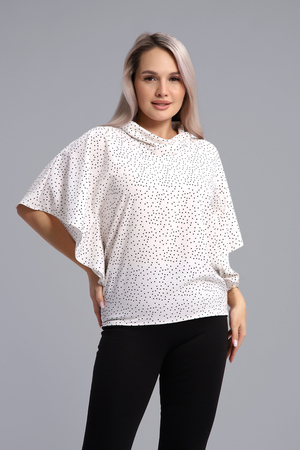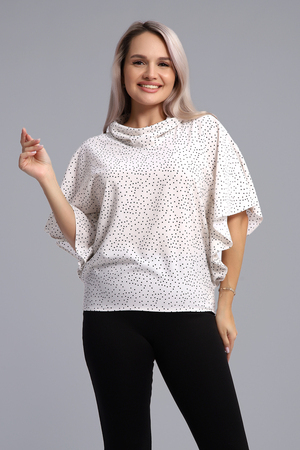 Очаровательная, очень женственная блузка из легкой, струящейся ткани - индо. В составе ткани есть вискоза, поэтому она абсолютно не электризуется и не мнется. Благодаря крою "летучая мышь" блузка будет отлично смотреться на любой фигуре, скроет недостатки и подчеркнет достоинства. Ее можно комбинировать и с юбкой, и с брюками. Воротник "хомут" добавляет образу элегантности. Базовые расцветки изделия легко впишутся в ваш гардероб.