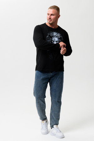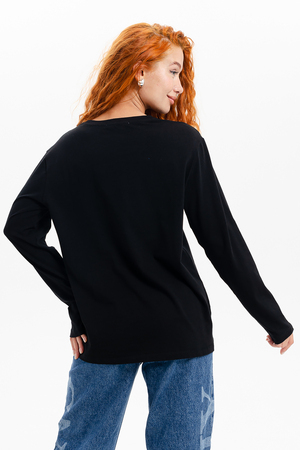 Лонгслив прямой, средней длины, с округлой горловиной. Рукав длинный. Горловина обработана обтачкой. Нанесена цифровая печать - хорошая детализация, устойчивость к стирке.