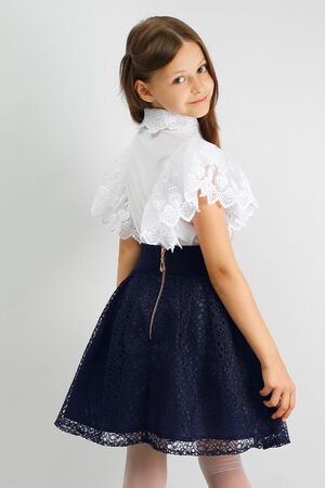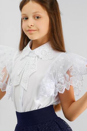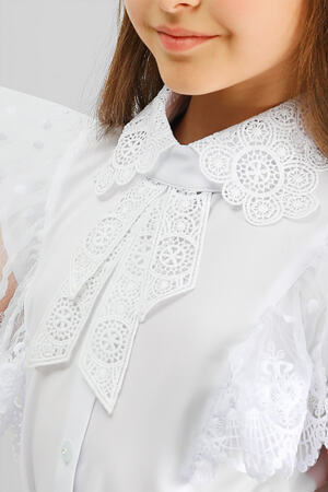 Блузка для девочки Соль&Перец. Отложной воротник выполнен из кружева, рукава-крылышки выполнены из лёгкого фатина. Мягкий, приятный к телу материал - шифон, обеспечит идеальную посадку изделия по фигуре. Блузка дополнена съёмным галстуком из кружева. Прекрасный выбор для создания красивого школьного образа.