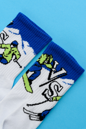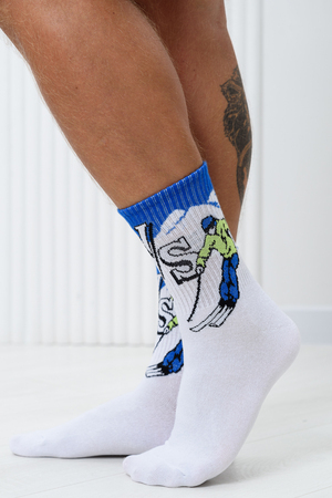 Комплект мужских носков 1 пара. На верхней части носка изображение сноубордиста.