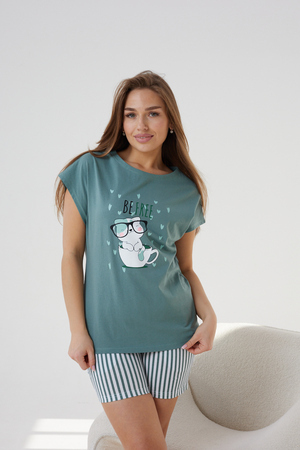 Пижама женская с шортами Modalina - отличный вариант одежды для дома, сна или пижамной вечеринки. Домашний костюм двойка пошит из натурального хлопка, легкого и тактильно приятного материала. Летняя ночная пижама оверсайз состоит из футболки с короткими рукавами и свободных шортиков. Молодежный костюм для дома представлен в самых красивых цветах сезона с трендовыми рисунками. Яркий комплект комфортно садится по фигуре, но при этом выглядит женственным. Такой фасон подойдет и девушкам больших размеров. Мягкая трикотажная пижама – отличная идея для полезного и практичного подарка.