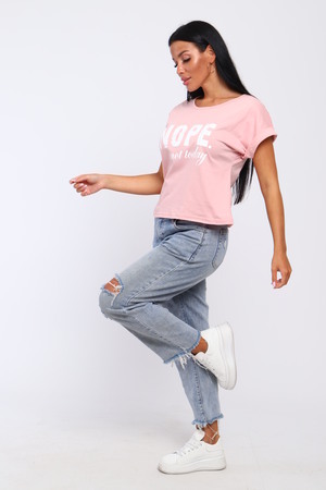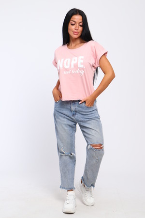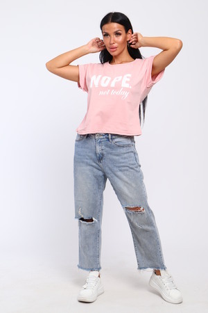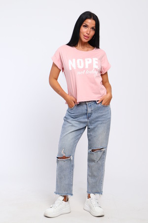 Футболка женская укороченная со спущенным плечом, округлым вырезом горловины и широкими рукавами с подворотами. Свободный крой и оригинальная надпись «Nope» делает ее актуальной в любом сезоне лето, осень. Современный дизайн и оригинальный крой подойдет для девушек подростков и более взрослой аудитории. Состоит из 100% хлопка (кулирка).