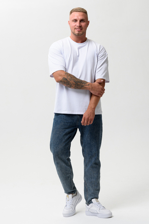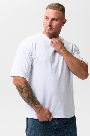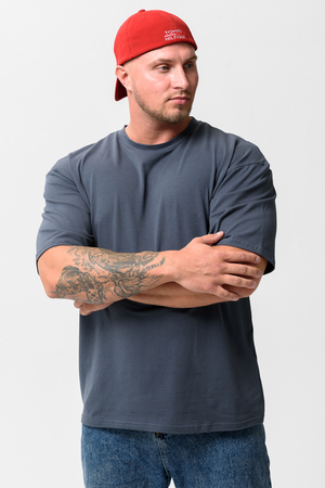 ХИТ сезона весна-лето! Стильная и модная футболка со спущенными плечом для мужчин создана, чтобы вписаться в дух времени. Она представляет собой оверсайз-модель со спущенными рукавами, которые придают ей особый шарм и оригинальность. Футболка подходит как для дома и отдыха, так и для активных тренировок. Высокая плотность 200гр/куб.м., материал кулирка с лайкрой. Широкий размерный ряд до 66 размера.