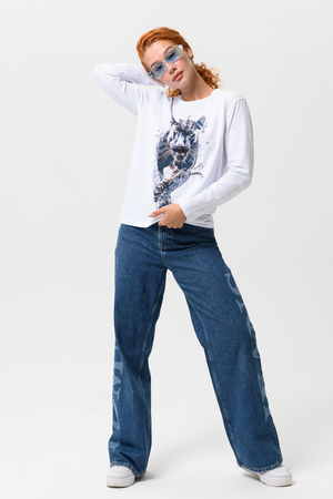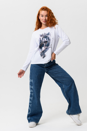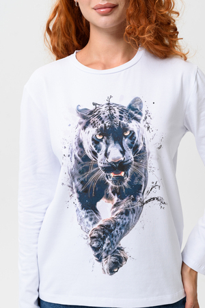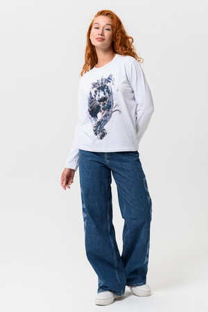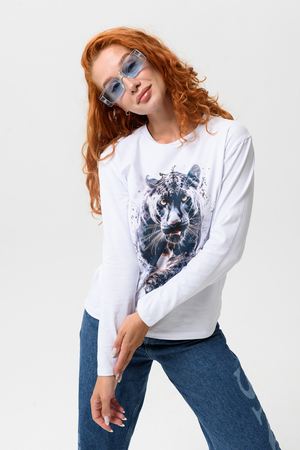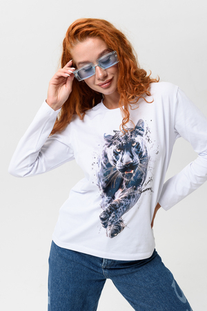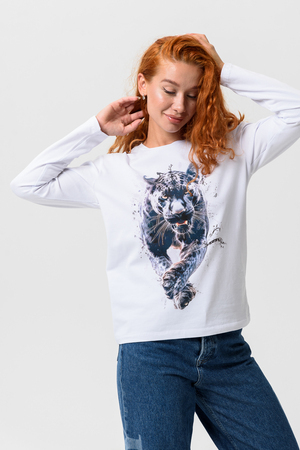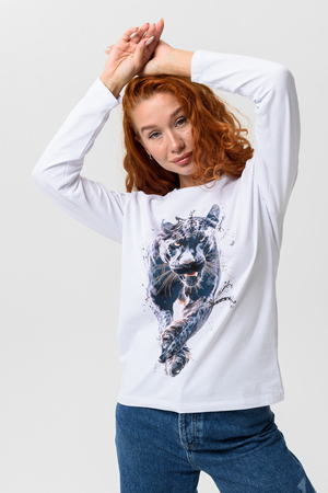 Лонгслив прямой, средней длины, с округлой горловиной. Рукав длинный. Горловина обработана обтачкой. Нанесена цифровая печать - хорошая детализация, устойчивость к стирке.
