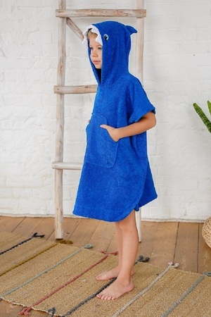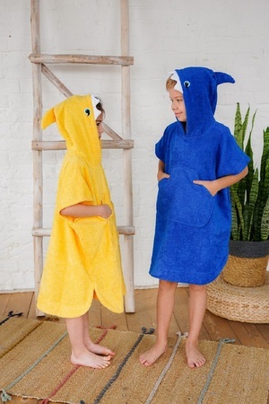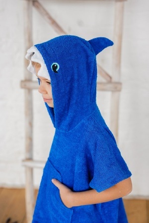 Детское махровое полотенце-халат в стиле пончо с капюшоном для мальчика или девочки в универсальном размере (на рост 98-122 см). Идеально после ванны, душа, уроков плавания в бассейне и в качестве банного полотенца дома, на пляже и в аквапарке. Для изготовления детского халатика используется качественная 100% махра - изделие максимально безопасно для нежной детской кожи. Банная накидка для малышей выполнена цельнокроеной - просто наденьте ее через голову и позвольте ребенку насладиться мягкостью и теплом натурального хлопка! В отличие от обычного полотенца пончо не сковывает движения, кроха может играть и веселиться сразу же после водных процедур. Яркие расцветки и декоративные элементы в виде аппликаций с мордочками забавных зверят на капюшоне вызывают у ребенка положительные эмоции и поднимают настроение у всех членов семьи. Пончо из махры может стать запоминающимся подарком дочке, сыночку, внучке или внуку к любому празднику! Упаковано в плотную прозрачную сумку с ручками и на молнии. Дизайны на выбор: Голубой Зайка, Желтая Акула, Розовый Единорог, Синяя Акула.