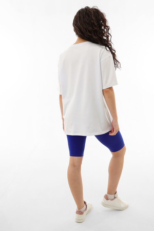 Спортивный костюм женский выполнен в белом цвете с голубыми акцентами, что придает ему неповторимый и свежий вид.