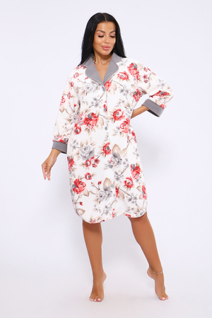 Домашний женский халат из мягкого, теплого флиса. Халат полуприлегающего силуэта, застегивается на петли и пуговицы. С карманами в боковых швах, длиной до колена с фигурной линией низа. Рукав втачной, длиной 3/4 с манжетом из отделочной ткани. Воротник пиджачного типа с закруглёнными углами, из отделочной ткани. Борта, воротник и лацканы отстрочены. В нашем халатике вы будете себя чувствовать тепло и уютно. А я яркие расцветки будут радовать вас круглый год.