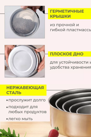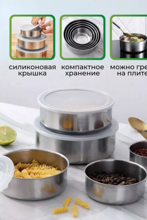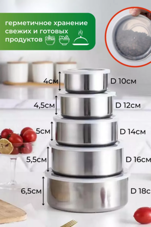 Набор облегченных мисок из нержавеющей стали, толщина стенок 0,5 мм лучший вариант практичного и компактного хранения на кухне. Салатники с крышками можно использовать для хранения сыпучих продуктов, или готовых блюд. Контейнеры для еды из высококачественной пищевой нержавеющей стали. Емкость стальная станет отличной походной туристической тарелкой в походах и на рыбалке. Контейнеры железные станут незаменимыми помощниками на каждой кухне и просто необходимы любой хозяйке для летних заготовок.