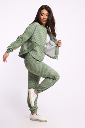 Костюм женский трикотажный. Легкая и приятная ткань. Костюм состоит из двух частей: Джемпер на молнии свободного покроя и брюки джоггеры. Костюм из ткани футер 2-х нитка, без начеса. Незаменим на прогулке, в путешествиях, в самолете, при занятиях спортом и фитнесом. Этот костюм с брюками займет особое место в вашем гардеробе. Рекомендуем бережную стирку при температуре не более 30 градусов.