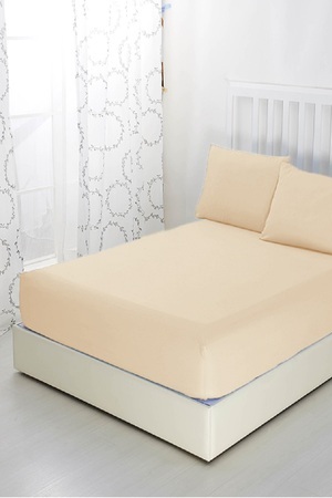 Простыня на резинке натяжная трикотажная однотонная. Простынь изготовлена из качественного трикотажного хлопкового полотна средней плотности 125 г/м2. Экологичная ткань - 100% хлопок, натуральная и гипоаллергенная. Постоянный контакт с кожей не вызывает раздражений и дискомфорта даже у детей. Обладает дышащим эффектом: летом будет прохладно, а зимой тепло. Трикотаж мягкий и очень приятный на ощупь. Благодаря прочной резинке, плотно облегает, не скатывается и не сминается во время сна. Прослужит долгое время даже после многочисленных стирок. Семейное постельное белье с натяжной простыней подойдет на кровати разных размеров. Имеет полноценный бортик 20 см и подходит для матрасов высотой до 15 см. Чтобы определить нужный размер простыни, следует измерить ширину и длину спального места по крайним точкам. Изделие прекрасно впишется в интерьер любой комнаты дома и дачи. На выбор представлено множество элегантных пастельных и ярких цветов. Рекомендуется стирать в стиральной машине при температуре до 40 С в режиме "деликатная стирка", лучше использовать жидкое средство для стирки и кондиционер для белья. Отжим необходим на минимальных оборотах. Желательно стирать отдельно от других видов тканей, особенно синтетических во избежание образования катышек. Возможна сушка в стиральной машине при невысоких температурах.