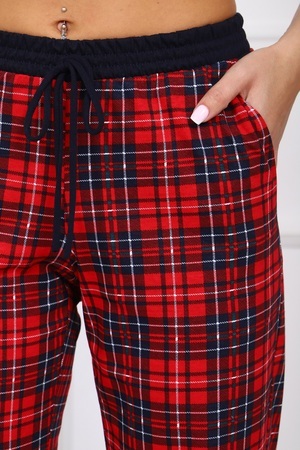 Брюки женские прямого кроя, в клетку, с удобными карманами в боковых швах, пояс эластичный, прошит на поясной машине, на поясе декоративный шнурок. Хлопок 100%.