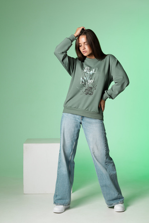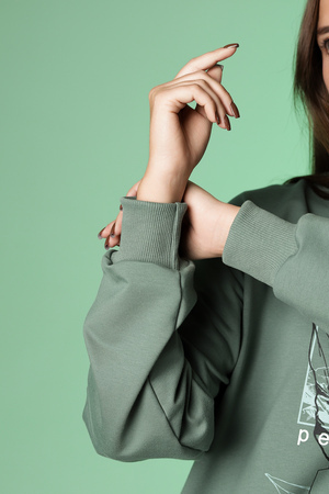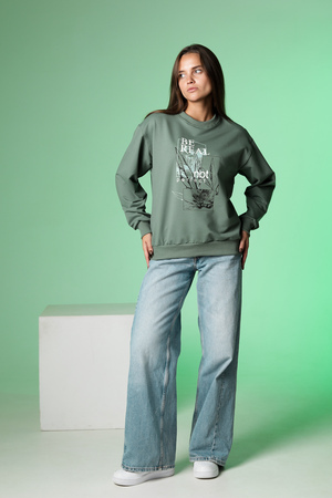 Свитшот оверсайз – это не только модный выбор, но и практичное решение для тех, кто ценит комфорт. Данная модель выполнена из качественного футера 2х нитки, это легкий и приятный на ощупь материал. Свитшот отлично комбинируется с различными элементами гардероба, будь то джинсы, юбки или спортивные брюки. В пошиве использованы модные цвета и лаконичный принт. Материал отделки пояса, горловины и манжет - кашкорсе, плотная хлопковая ткань.