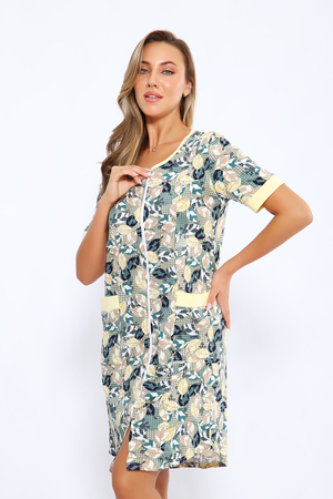 Халат на молнии полуприлегающего силуэта с короткими рукавами на манжетах, накладными карманами. Неотъемлемый элемент домашнего гардероба.