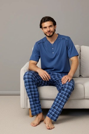 Классический домашний комплект мужской от бренда Lika Dress - идеальный вариант для отдыха, для сна и других домашних активностей. На футболке есть кнопки, которые облегчают надевание и выглядят стильно и современно. Мягкое трикотажное полотно домашней пижамы обеспечит комфорт и свободу движений. Одежда подходит для ночного сна и дневного отдыха. Ношение такого натурального комплекта действует успокаивающе на нервную систему. Низ изделия с ярким и небанальным, немарким принтом делает этот костюм еще более привлекательным. Брючки с удобной посадкой на вшитой резинке и с глубокими карманами. Свободная футболка имеет оригинальный рисунок.