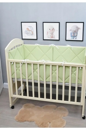 Бортики в кроватку идеально подойдут в детскую кроватку для новорожденного со спальным местом 60 на 120см. Высота бортиков 30см. Бортики в детскую кроватку становятся не просто украшением, но и символом заботы о безопасности и комфорте ребенка Защитные бортики безопасные и плоские, упругие и плотные, занимают мало места в детской кроватке, не провисают. Бортики в детскую кроватку стильные и лаконичные, с их помощью кровать детская преобразится в уютный уголок. Бортики для кроватки защитят малыша от ушибов. В качестве завязок используется белая прочная тесьма. Завязки прочные и отлично фиксируют бортик в кроватке. Длина одной завязки 30 см. Ленты аккуратно обработаны по краю. Каждый бортик имеет завязки снизу и сверху по углам и в середине, поэтому они плотно фиксируются в детской кровати, что очень удобно при использовании. Количество завязок на бортиках 3*2шт сверху и 2шт снизу. Материал 100% хлопок. Матовая мягкая и дышащая ткань, не вызывает аллергию и отлично пропускает воздух. Наполнитель Экофайбер простеган с тканью по всей площади изделия. После многочисленных стирок стеганые бортики сохраняют все свои свойства, наполнитель не вылезает через ткань и не провисает со временем. Для стирки рекомендуем бережный режим 30 градусов, отжим 400 оборотов, а также кондиционер для детского постельного белья. Фактический оттенок изделия может незначительно отличаться от представленного на сайте, т к у разных мониторов разная цветопередача. Подарите своему малышу уют и безопасность с бортиками в кроватку. Это идеальное решение для будущих мам и незаменимый подарок как для мальчика, так и для девочки.