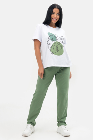 Этот легкий летний трикотажный костюм от бренда Jexy – воплощение комфорта и стиля для домашних и повседневных занятий. Брючный костюм женский, создан с учетом потребностей женщин всех размеров, включая категорию больших размеров, он так же идеально подходит для невысоких женщин и беременных, благодаря свободному крою. Костюм женский летний нарядный выполнен из мягкого и приятного на ощупь хлопка, что делает его идеальным выбором для жаркой погоды. Материал позволяет коже дышать, создавая ощущение прохлады даже в самый знойный день лета. Вы можете наслаждаться комфортом этого комплекта дома или выйти в нём на прогулку по морскому побережью. Легкость ткани придаёт дополнительное удобство во время долгого ношения. Брюки с резинкой на талии обеспечивают идеальную посадку и свободу движений. Комплект большого размера включает в себя штаны и футболку с коротким рукавом, которая не стесняет движений рук. Эта модель трикотажного костюма станет вашей любимой домашней одеждой. Комплект "двойка" включает в себя футболку с ярким принтом и прямые брюки, создавая стильный и гармоничный образ. Свободный крой повседневного костюма заслуживает отдельного упоминания. Костюм из легкой хлопковой ткани подчеркивает женственные линии тела, не причиняя дискомфорта и не ограничивая движения. Одежда "оверсайз" давно получила высокую оценку за способность скрывать недостатки фигуры и подчеркивать её достоинства. Короткий рукав делает этот брючный костюм идеальным вариантом на лето: он создает ощущение лёгкости и воздушности даже в самые жаркие дни. Позвольте себе наслаждаться каждым моментом вашей жизни в этом великолепном трикотажном костюме, который подчеркнет вашу индивидуальность и подарит незабываемые ощущения.