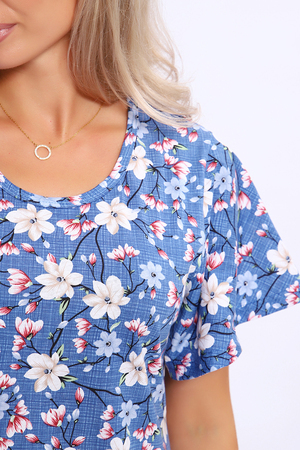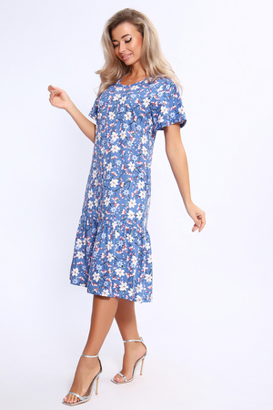 Платье свободного кроя с короткими рукавами - крылышками. По низу изделия широкий волан на сборке. Карманы в боковых швах.
