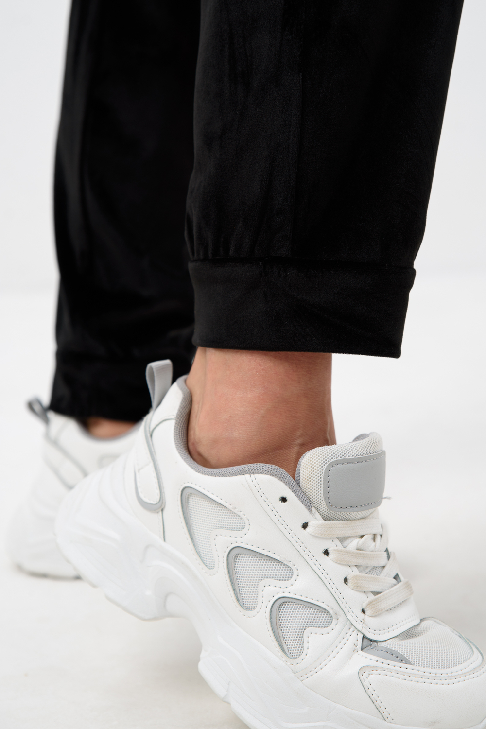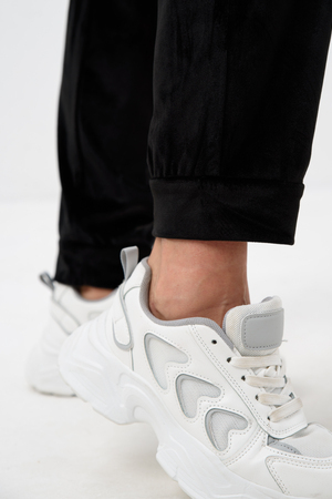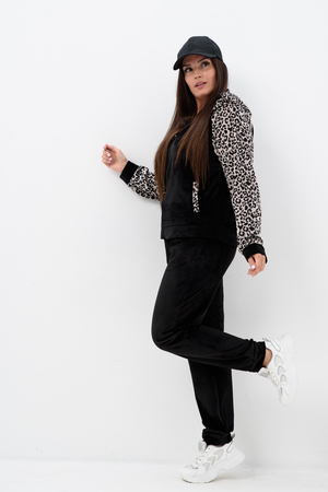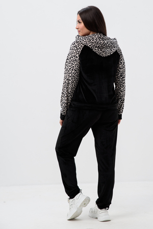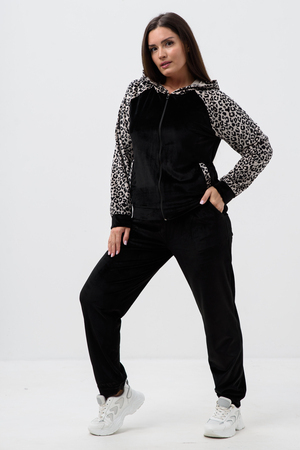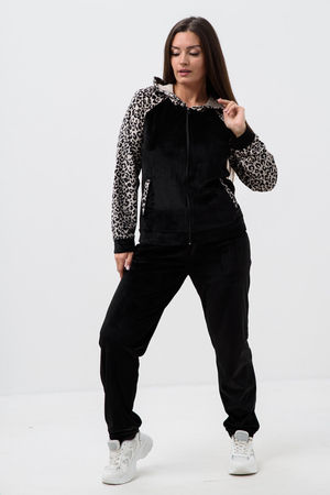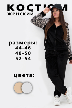 Женский костюм выполнен из мягкой и приятной ткани, кофта на молнии с длинным рукавом на манжете и капюшоном, чтобы укрыться от прохладной погоды, также имеются карманы, брюки на манжете, пояс на резинке, с карманами. Двойка хорошо подойдет как домашний костюм, в нем уютно и комфортно, также подойдет и для прогулки, в нем не холодно и не сковывает движения, можно дополнить жилеткой и головным убором, прекрасный выбор для вашего гардероба.