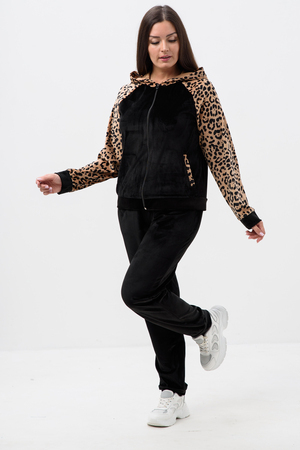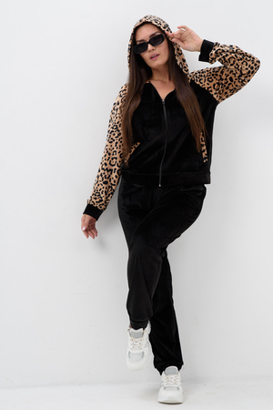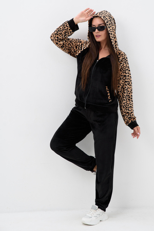 Женский костюм выполнен из мягкой и приятной ткани, кофта на молнии с длинным рукавом на манжете и капюшоном, чтобы укрыться от прохладной погоды, также имеются карманы, брюки на манжете, пояс на резинке, с карманами. Двойка хорошо подойдет как домашний костюм, в нем уютно и комфортно, также подойдет и для прогулки, в нем не холодно и не сковывает движения, можно дополнить жилеткой и головным убором, прекрасный выбор для вашего гардероба.