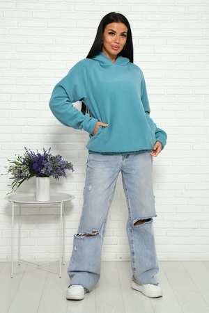 Толстовка женская из флиса, с капюшоном, с боковыми карманами, рукава реглан, низ изделия и низ рукавов - на резинке. Может составить комплект с брюками, артикул 1027.