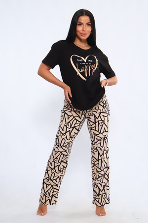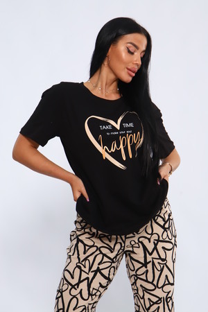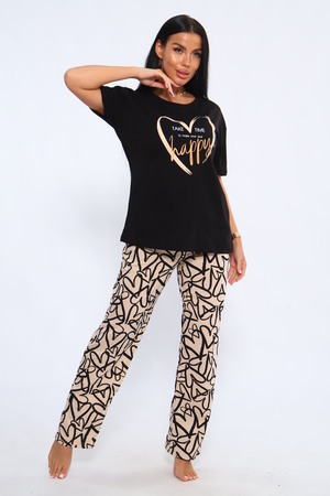 Костюм футболка и брюки. Футболка свободного кроя, короткий рукав на спущенном плече. Брюки прямого кроя на резинке.