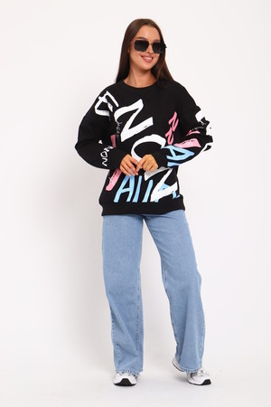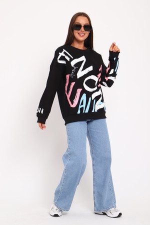 Свитшот отличный подойдет для модных девочек. Он представляет собой легкую кофту в оверсайз стиле с яркими прикольными принтами. Модная одежда с крутым принтом на яркое лето или весну всегда пользуется популярностью у молодежи,